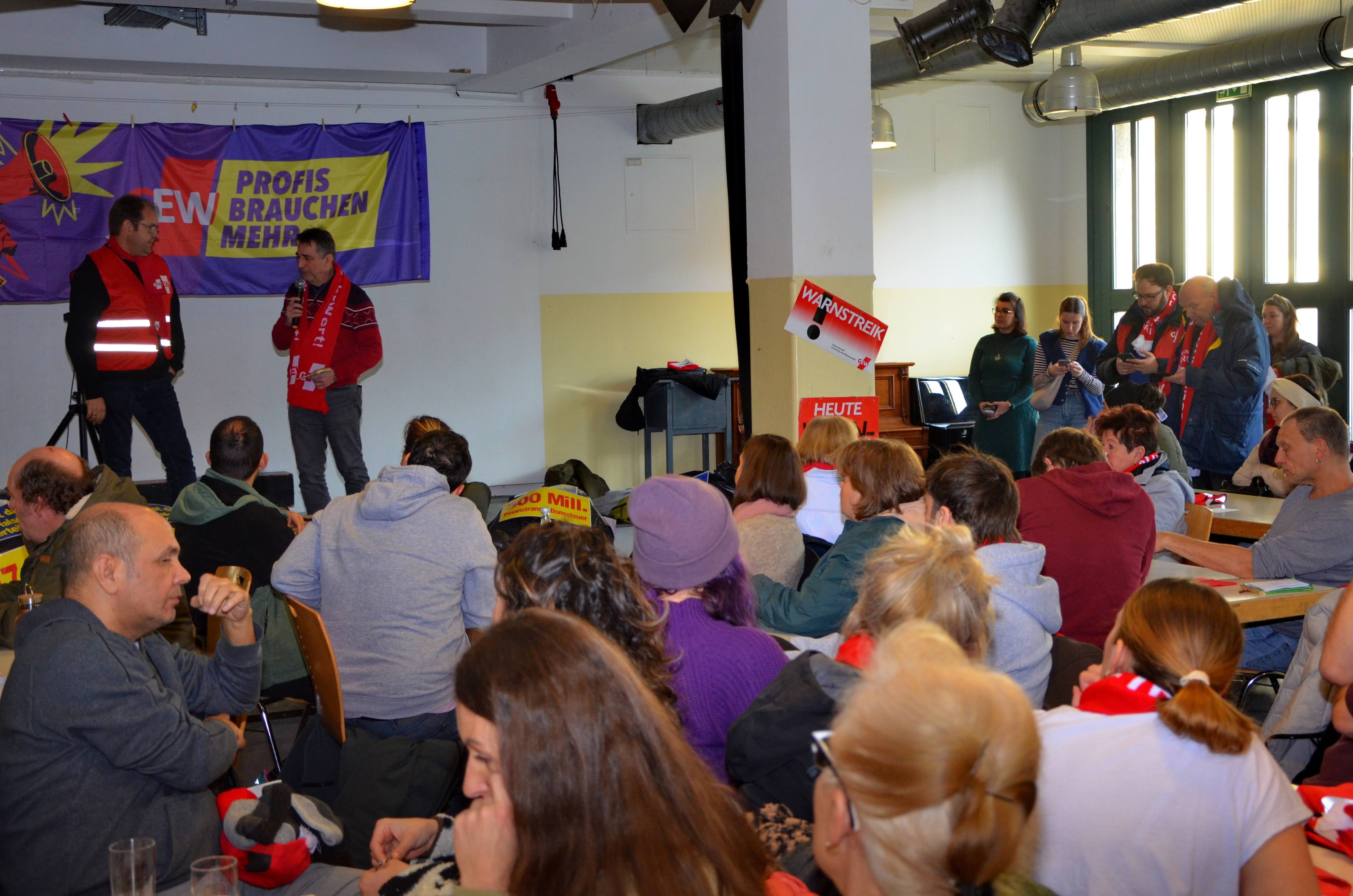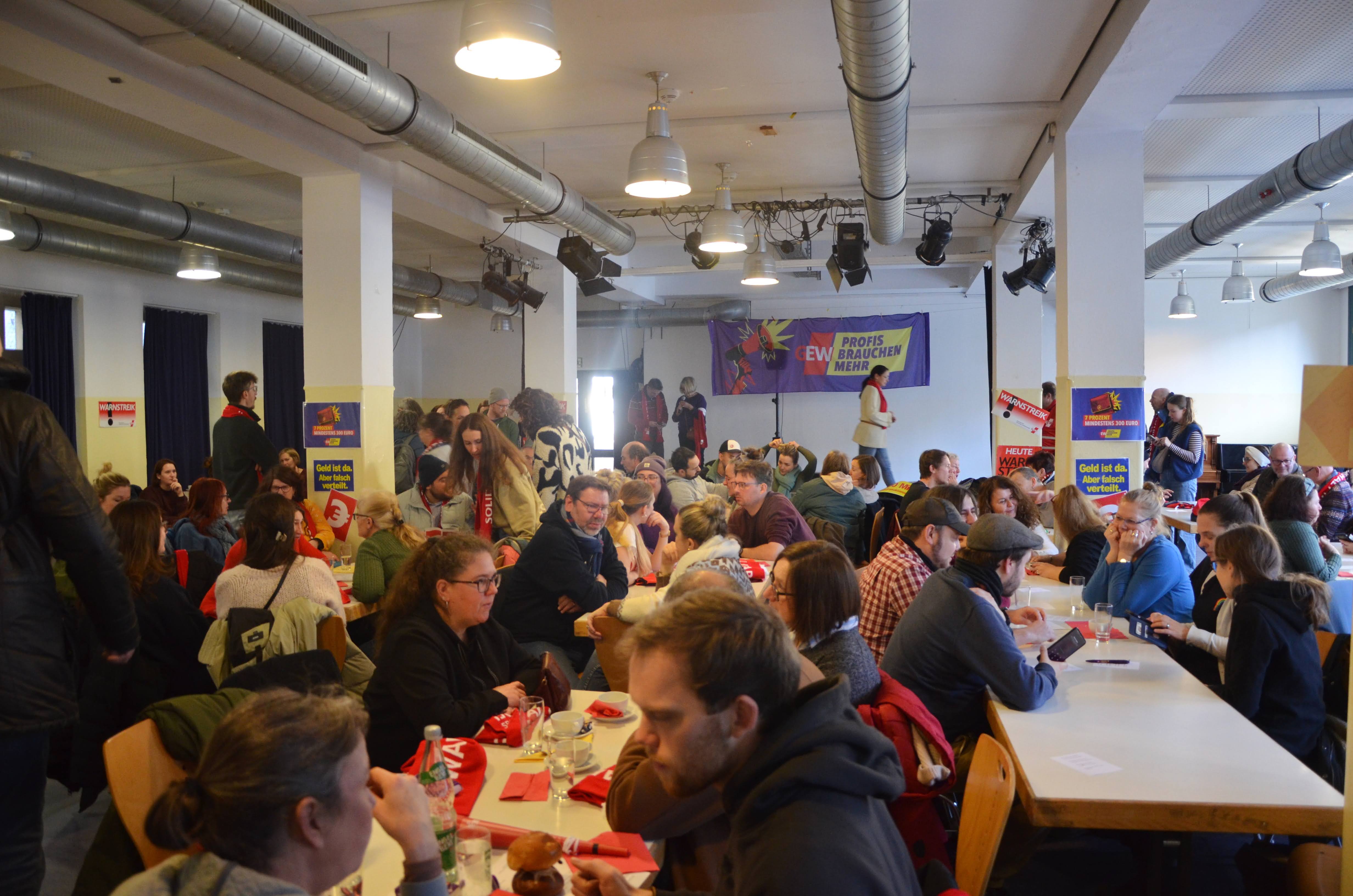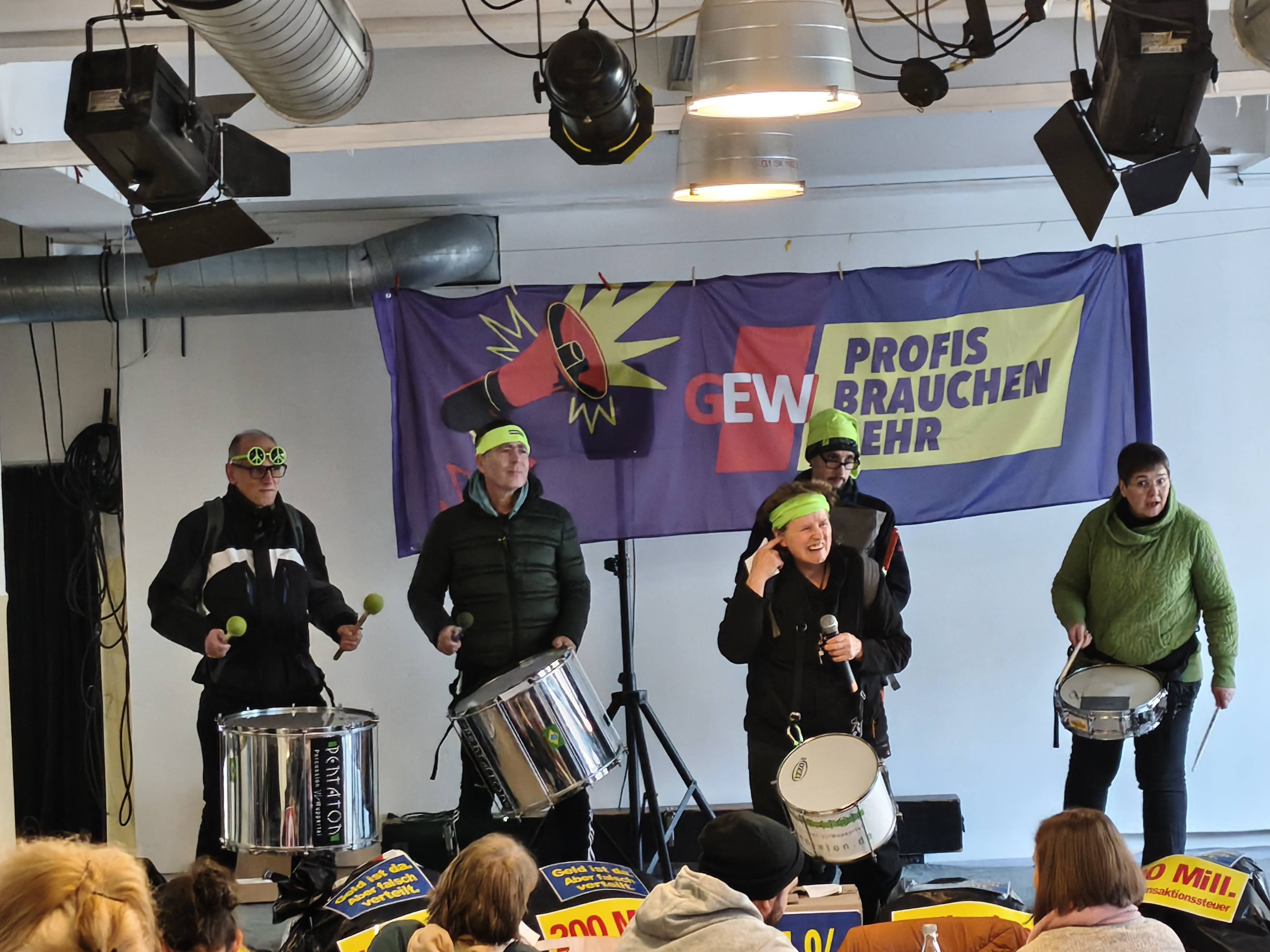 Mit Trommeln, Tröten und Trillerpfeifen und viel Wut im Bauch machten angestellte Lehrkräfte, Sozialarbeitskräfte und studentische Beschäftigte ihrem Ärger über die Blokadehaltung der Arbeitgeber Luft. Sie alle verdienen eine deutliche Gehaltssteigerung, damit sie weiter gesund und motiviert ihre gute Arbeit leisten können. Das ist auch ein Ausdruck von Wertschätzung für diese wichtige Arbeit.