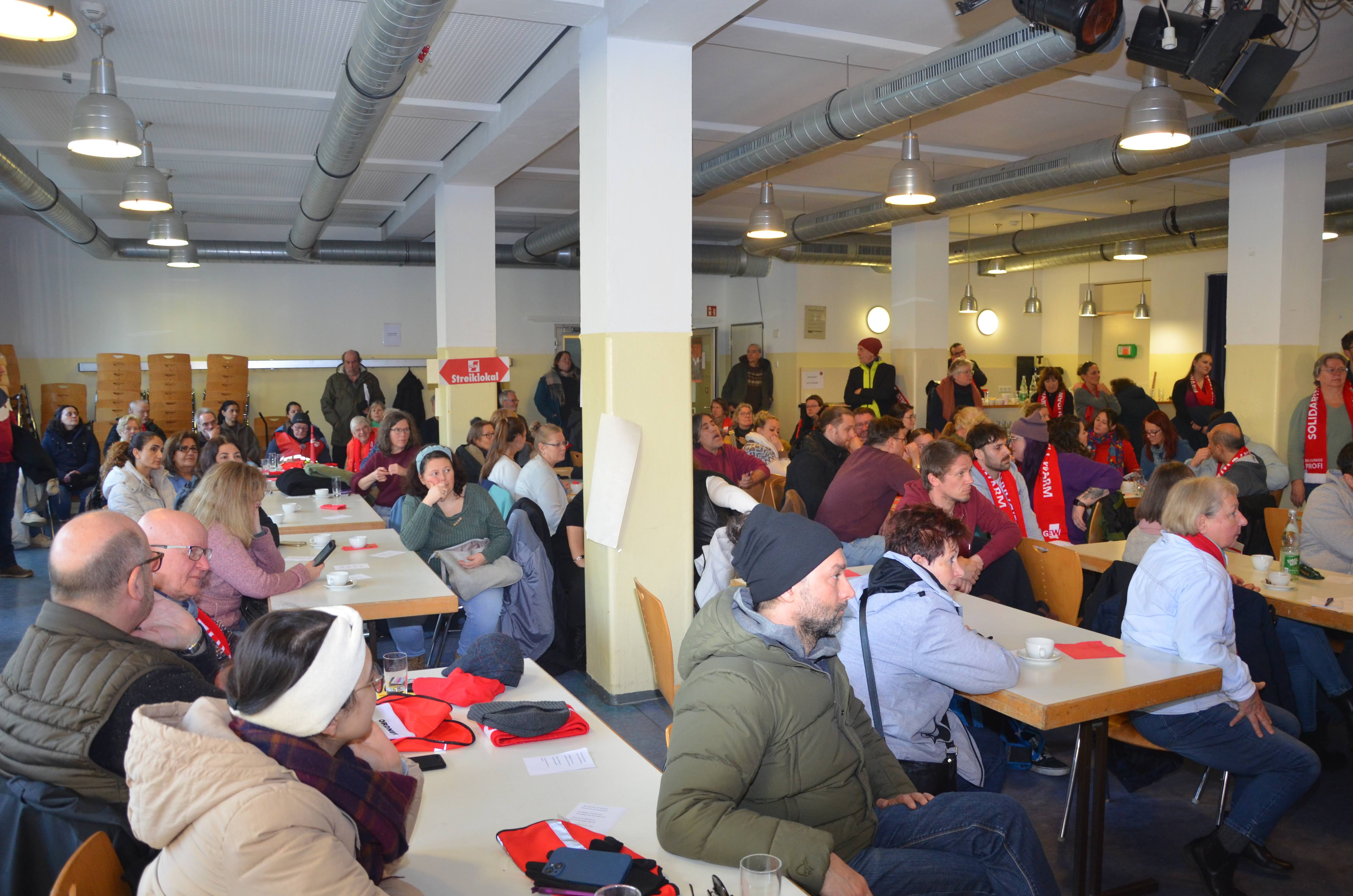Alle sind sich einig: Wir werden weiter auf die Straße gehen, damit die Arbeitgeber sich bewegen: 7% mehr Gehalt, mindestens 300€.