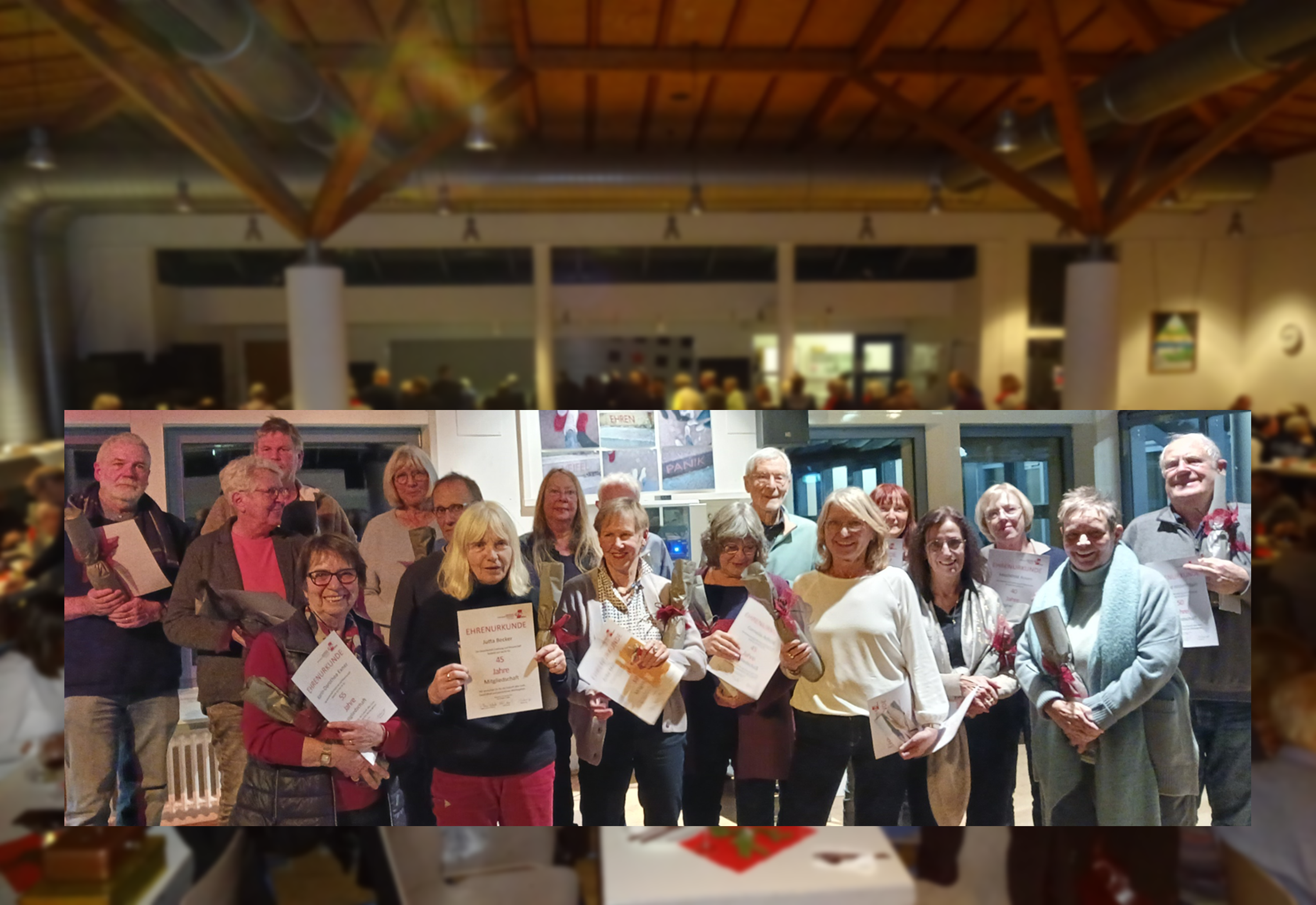 Im Mittelpunkt des ersten Teils des schon fast traditionellen Jahresausklangs der GEW Wuppertal stand die Ehrung der langjährigen GEW-Jubilar*innen. Unter Beifall der Anwesenden nahmen sie das Dankeschön der GEW für ihre langjährige Treue zur Gewerkschaftsbewegung gerne entgegen. Nach dem leckeren Essen, das die Mensa der Gesamtschule Else Lasker-Schüler wieder überragend vorbereitet hatte, begeisterte Matthias Reuter mit seinem Kabarettprogramm rund um die digitalen Momente im Alltag. Für das Projekt die „Kleinen Ameisen“ in der Wuppertaler Partnerstadt Matagalpa (Nicaragua) konnten 735€ gesammelt werden.